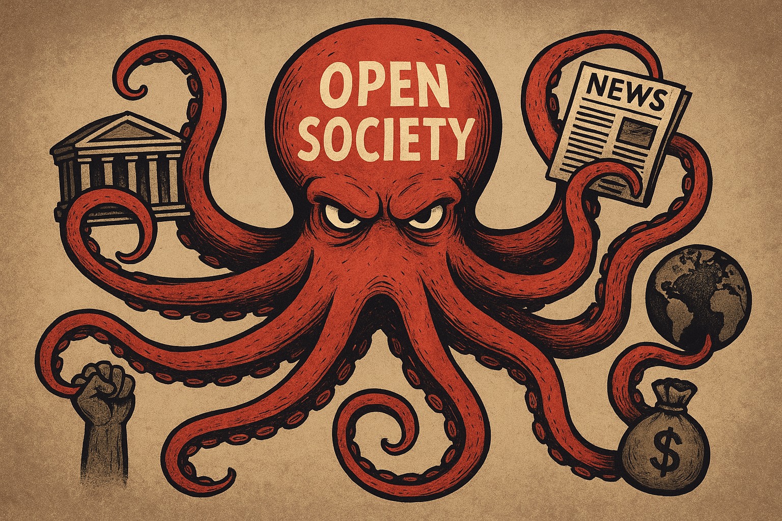 A Open Society funciona há décadas como um polvo global, com tentáculos em ONGs, partidos, jornais e universidades. Tudo sempre embalado no discurso pomposo de “democracia” e “direitos humanos”, enquanto por trás se arma uma engenharia social calculada para dissolver fronteiras, corroer soberanias e fabricar marionetes políticas. Não é à toa que países como a Hungria já escancararam as portas da casa para expulsar esse tipo de influência corrosiva.